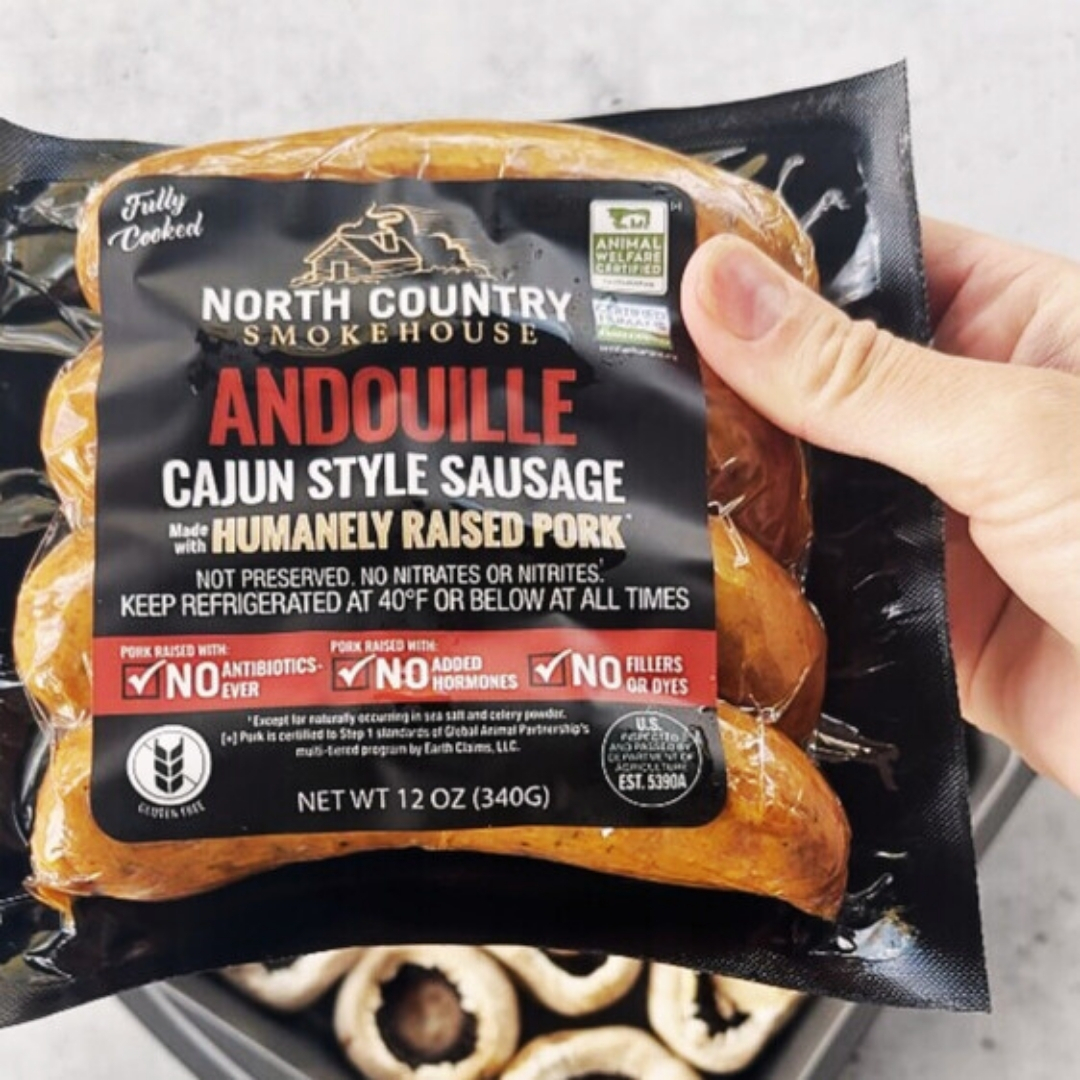 - 1, 1 lb package North Country Smokehouse Andouille Sausage, casings removed