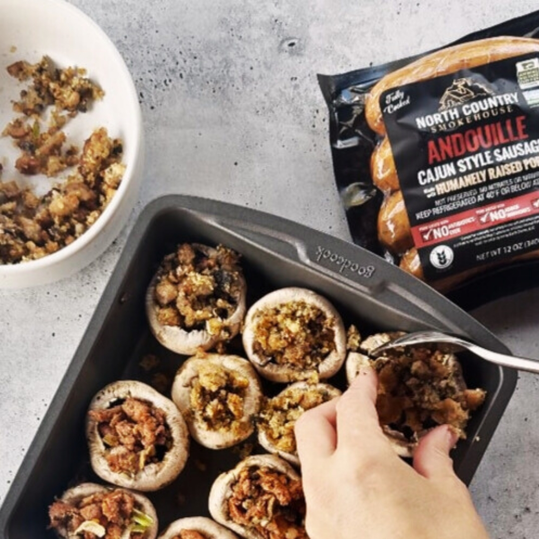 Turn up the heat without scaring off the crowd. These Cajun-style stuffed mushrooms lean on the smoky kick of our Cajun-inspired Andouille and the classic “trinity” of Cajun cooking. Big flavor. Small mushroom. Zero leftovers.